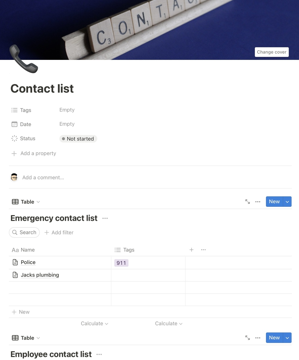 I completely editable contact list for your business with a separate section for employees and emergency contacts